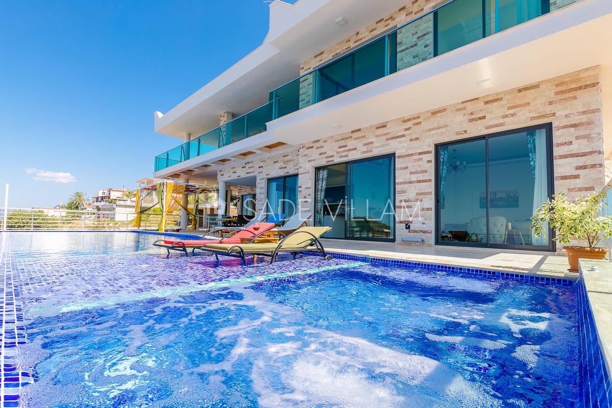 It is a rental villa located in Kalkan Ulugöl region, the pool is intertwined with sheltered nature, the address of calmness, serenity and peace. Villa For Rent Mert Ulugöl has a 2-bedroom accommodation capacity for 4 people in the category of conservative villas, honeymoon villas, villas with jacuzzis and villas in nature. It is a villa that stands out, creating a modern and striking effect. Although our villa has a limited sea view from the pool terrace, it is located in a wonderful nature. Our villa offers all the elements together for those who want to give you a wonderful holiday and a truly high quality, different and exciting honeymoon holiday.