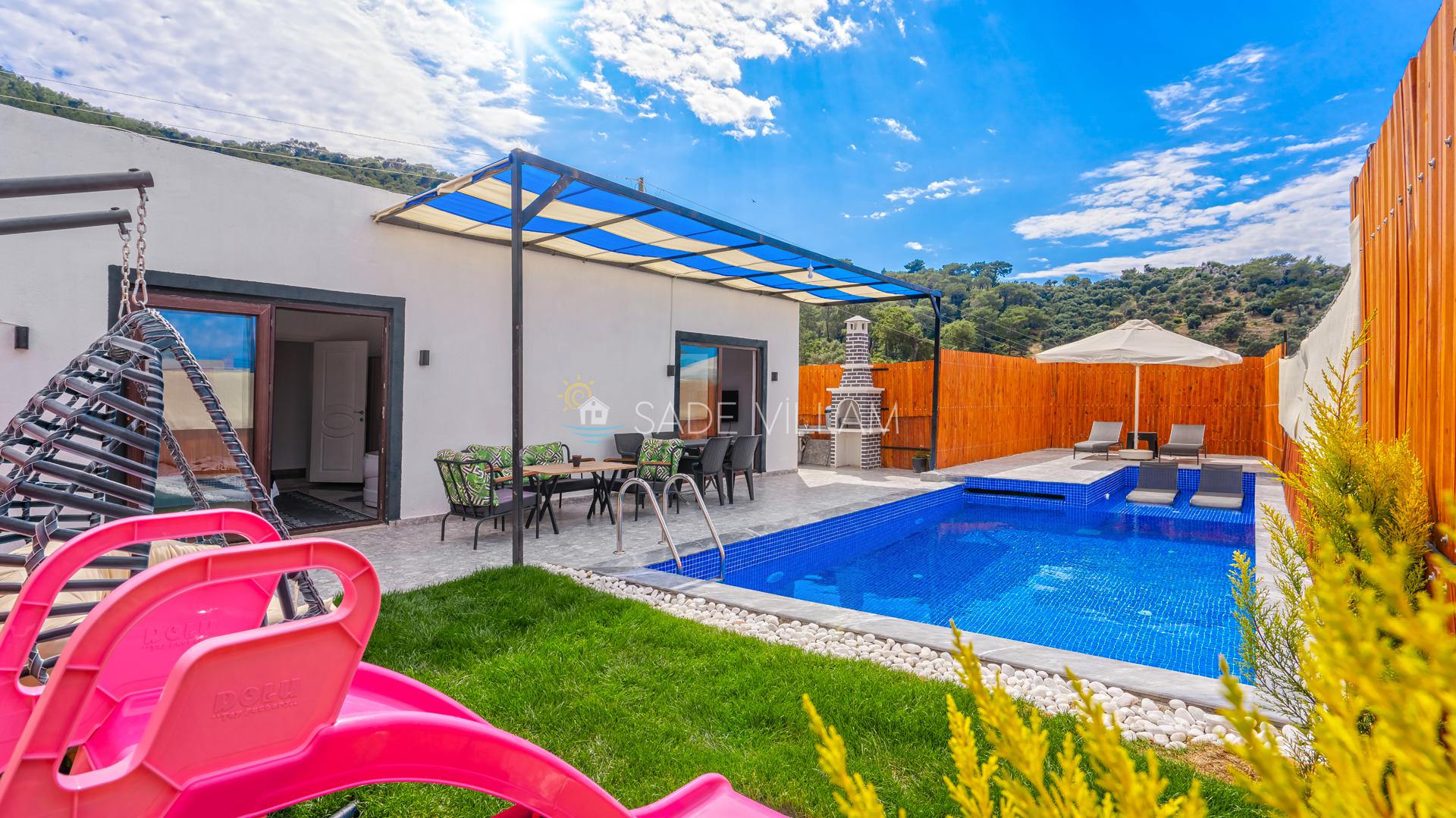 Havuz Bahçe Bilgileri Özel Yüzme Havuzu Şezlong Şemsiye Sehpa Yemek Masası Sandalyeler Barbekü (Mangal) Salıncak Sığ Havuz