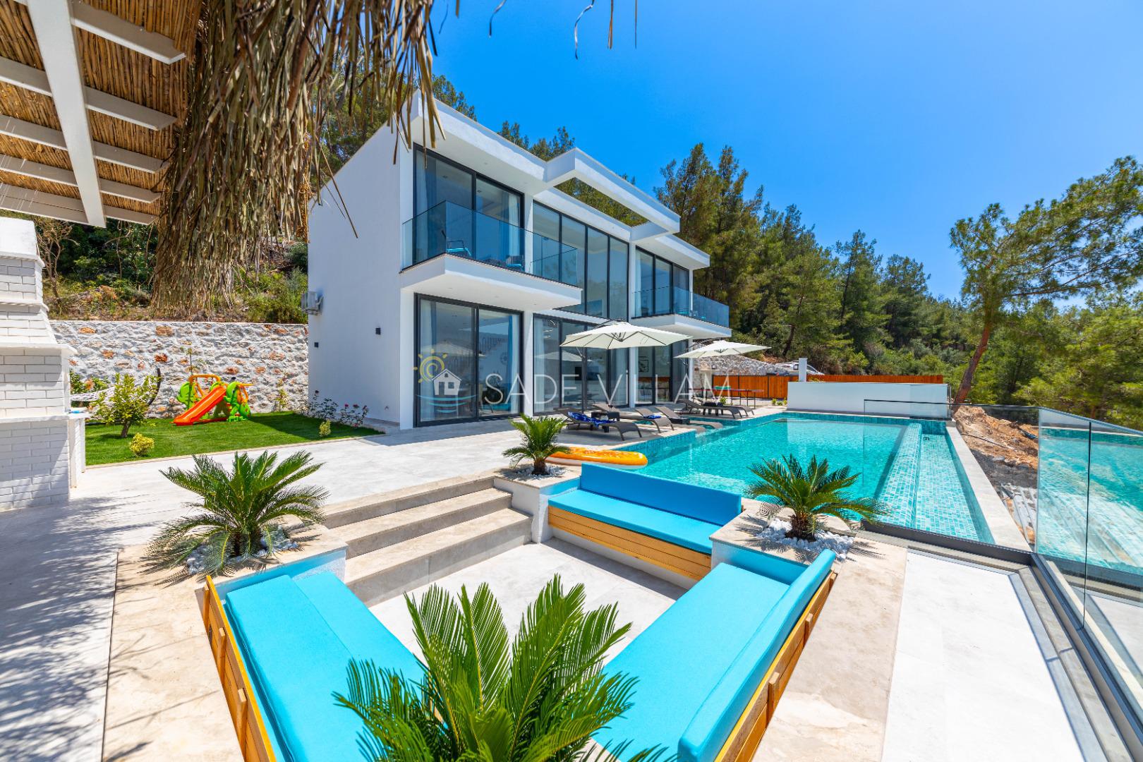 Havuz Bahçe Bilgileri Özel Yüzme Havuzu Şezlong Şemsiye Sehpa Yemek Masası Sandalyeler Barbekü (Mangal) Salıncak